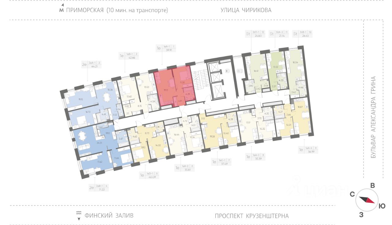 Продается 1-комнатная квартира в ЖК "Бульвар Грина" на 3 этаже. Общая площадь составляет 39.91 кв. м. Квартира с чистовой отделкой. Срок сдачи: 4-кв. 2028. Жилой комплекс "Бульвар Грина" располагается по адресу Санкт-Петербург, Василеостровский.
