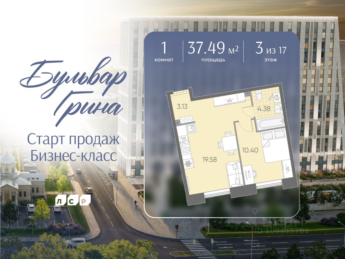 Продается 1-комнатная квартира в ЖК "Бульвар Грина" на 3 этаже. Общая площадь составляет 37.49 кв. м. Квартира с white box отделкой. Срок сдачи: 4-кв. 2028. Жилой комплекс "Бульвар Грина" располагается по адресу Санкт-Петербург, Василеостровский.