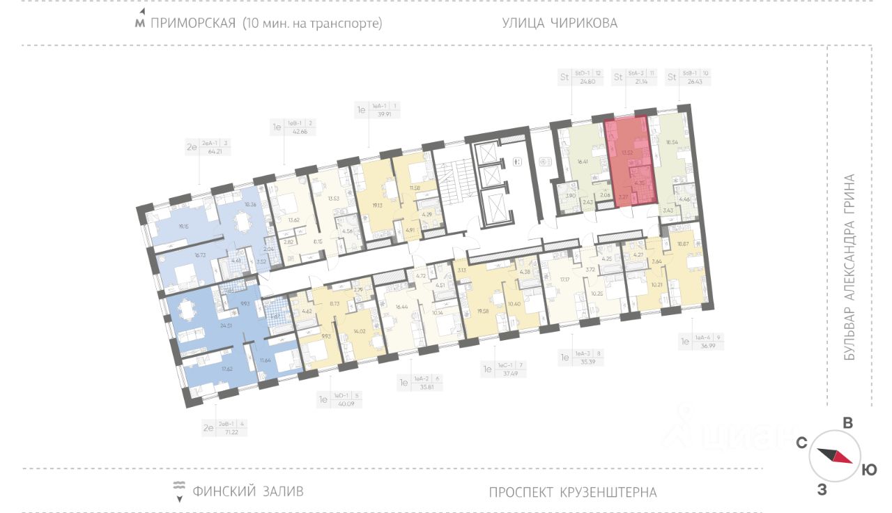 Продается студия в ЖК "Бульвар Грина" на 3 этаже. Общая площадь составляет 21.14 кв. м. Квартира с white box отделкой. Срок сдачи: 4-кв. 2028. Жилой комплекс "Бульвар Грина" располагается по адресу Санкт-Петербург, Василеостровский.