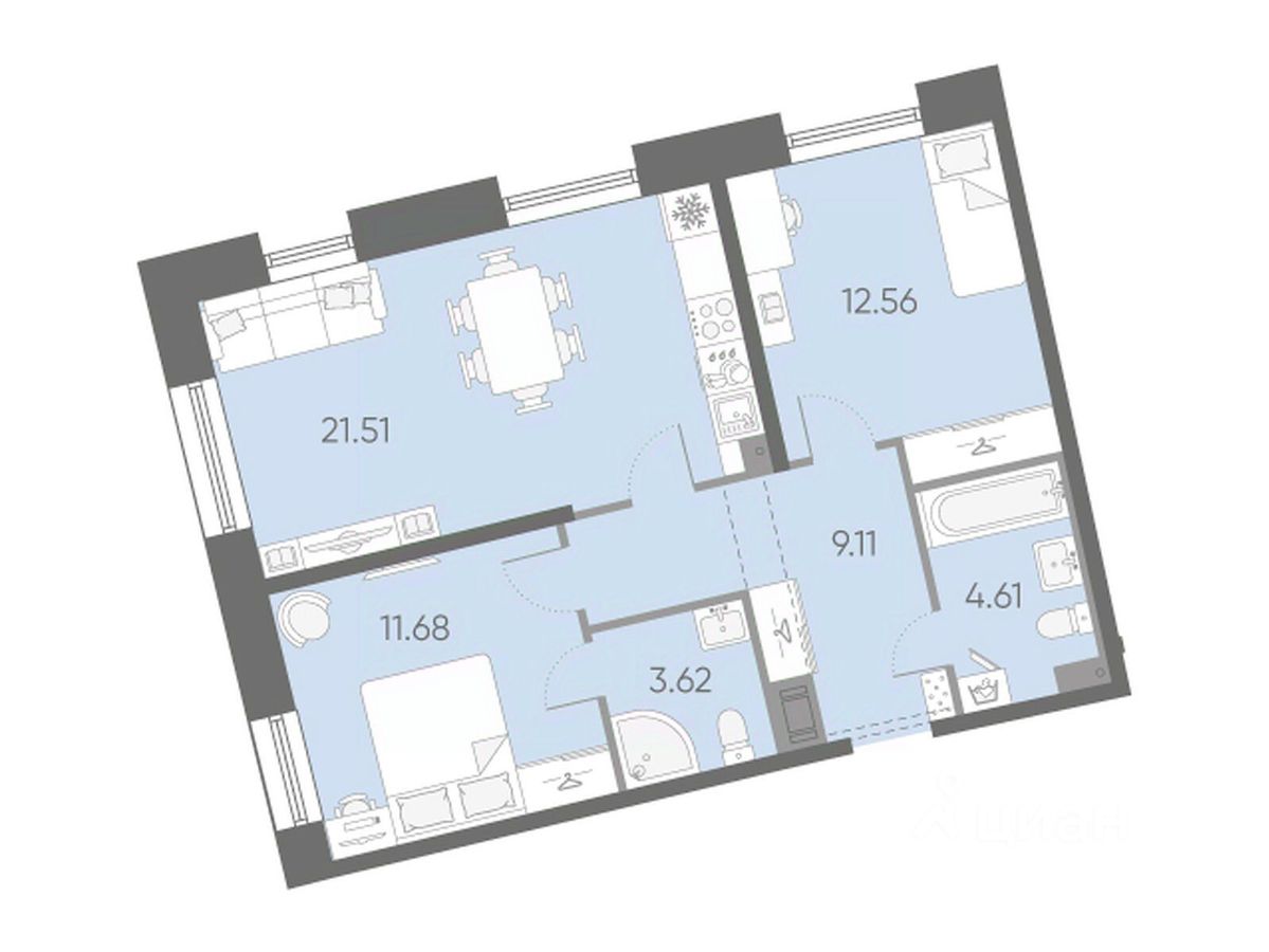 Продается 2-комнатная квартира в ЖК "Бульвар Грина" на 11 этаже. Общая площадь составляет 63.09 кв. м. Квартира с чистовой отделкой. Срок сдачи: 4-кв. 2028. Жилой комплекс "Бульвар Грина" располагается по адресу Санкт-Петербург, Василеостровский.