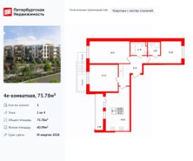 Уникальная, функциональная европланировка, большая кухня-гостиная 18.34 м², вместительная прихожая 9.23 м². Общая площадь квартиры - 75.78 м², жилая 40.99 м², высота потолка 2.77 м.