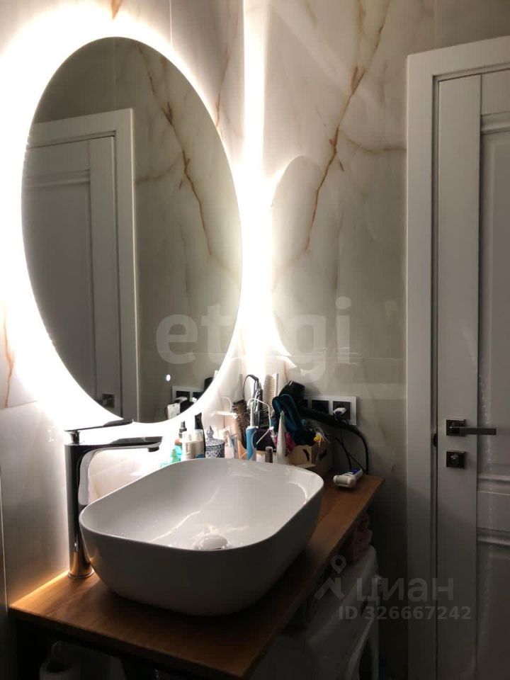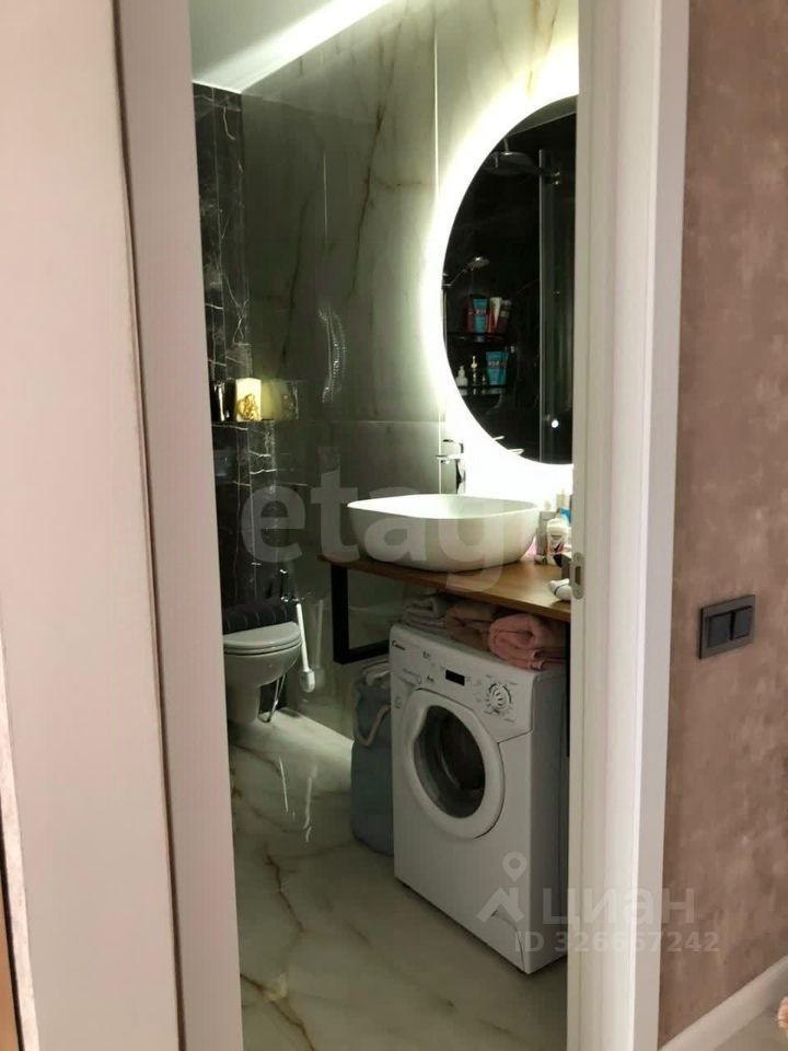 В квартире выполнен современный ремонт с материалами высокого качества, установлена современная сантехника, новая бытовая техника. Санузел совмещенный, оборудован теплым полом. Вся мебель и техника новая, всё остаётся после продажи.