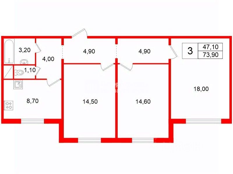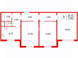 73,9 м²