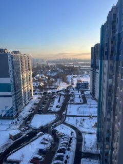 Солнечная однокомнатная на 18 этаже с видом на закат и кухней 10,4 м²