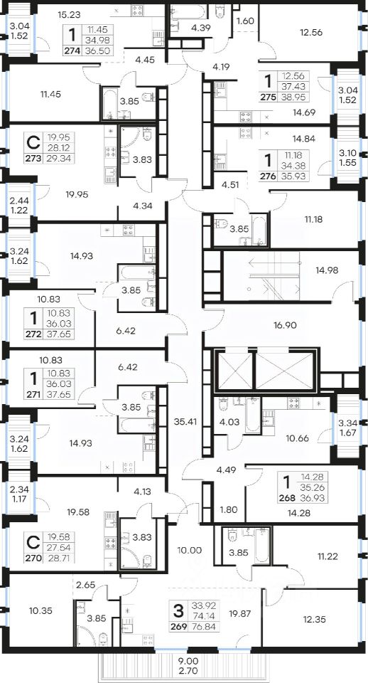 Продается квартира-студия на 15-м этаже в проекте комфорт-класса Парголово. Общая площадь лота составляет 29,34 кв. м, из которых 19,95 кв. м отведено под жилую и кв. м под кухонную зону. Номер квартиры - 273.