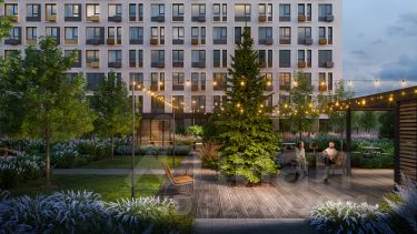 Приватное пространство внутреннего двора с беседками с розетками для работы и отдыха, зеленый двор с уютным многоуровневым освещением, детскими эко-площадками и спортивными площадками создает неповторимую атмосферу, заряжающую энергией на новые свершения.
