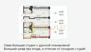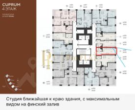 Уникальное положение на этаже - ближе всех к заливу. Угол обзора шире, чем у соседних студий. Вид на Финский залив и благоустройство стилобата - максимально открытый и неперекрываемый
