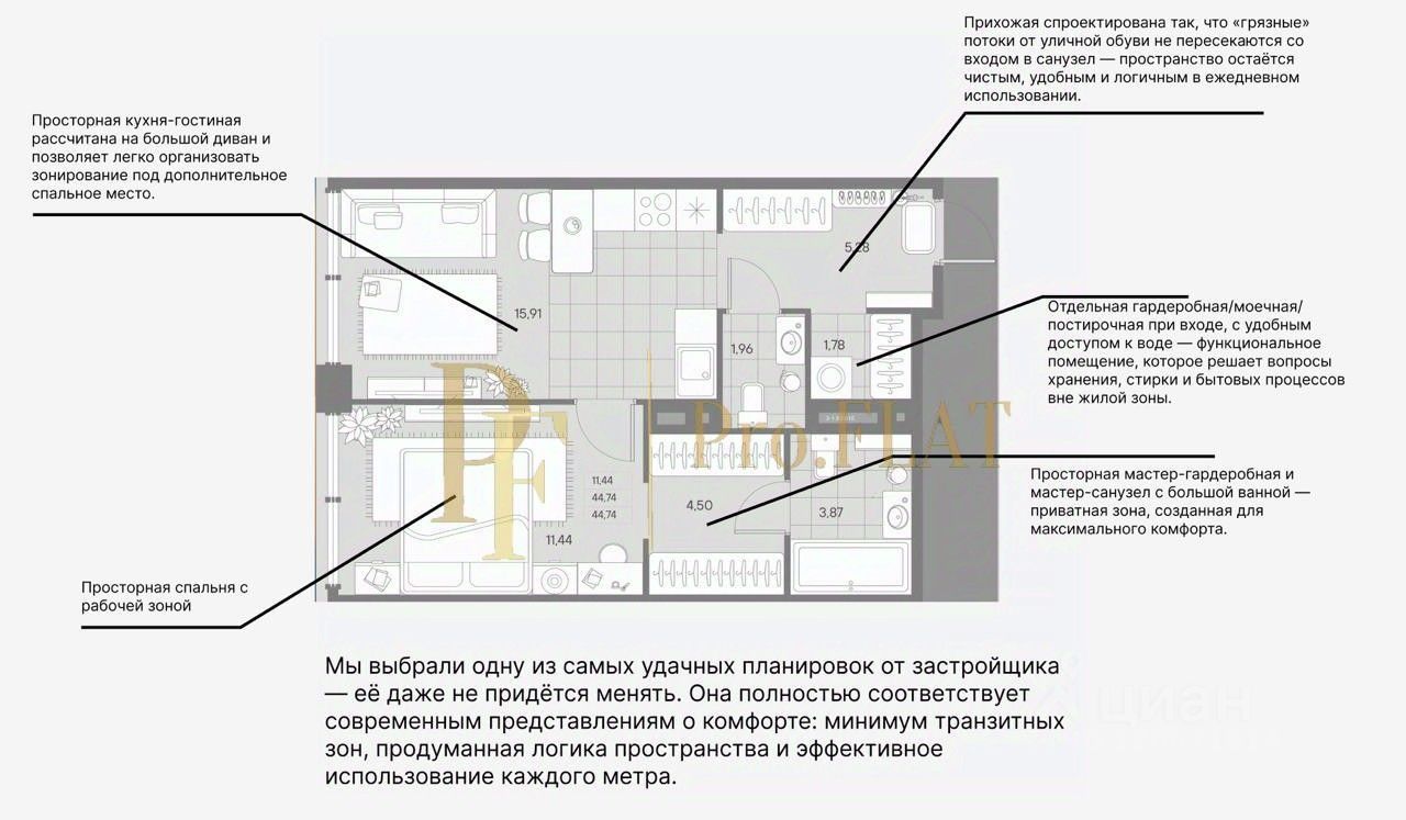 Мастер-зона с приватностью - просторная гардеробная и отдельный санузел с местом под ванну. Ваш личный ритуал комфорта