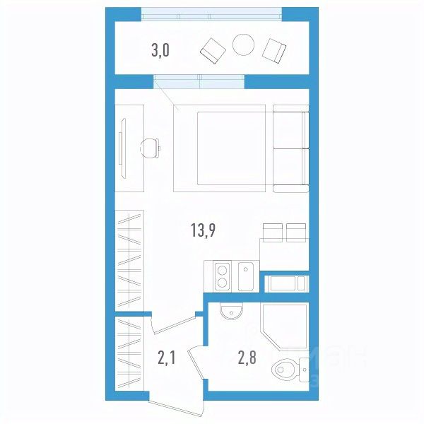 Студия от 18,1 м²