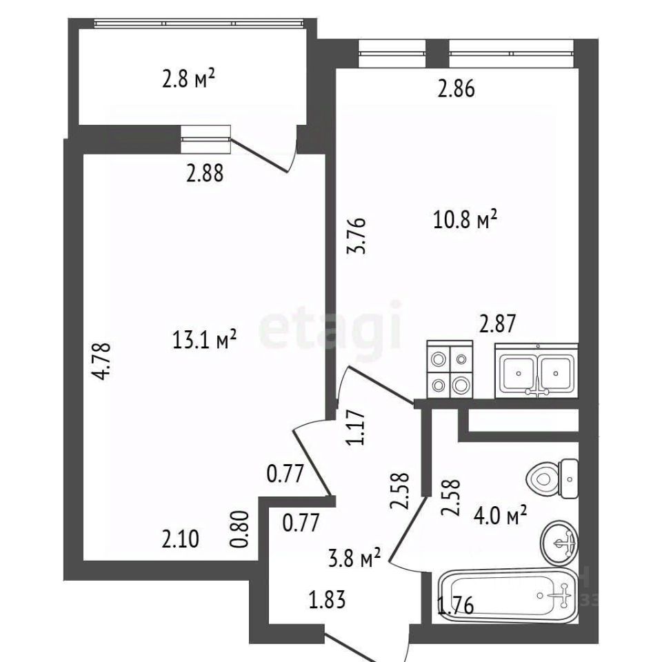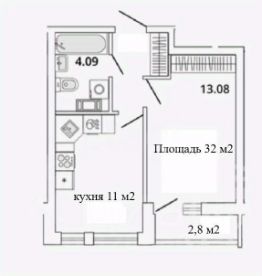 Практичная планировка: просторная кухня-гостиная 11 м², уютная комната 13 м2, вместительная прихожая с нишей под шкаф-купе. Застекленный балкон - 2,8 м2.