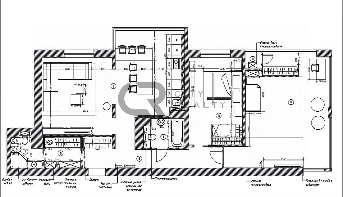 Квартира выполнена по индивидуальному дизайн-проекту с грамотным зонированием: