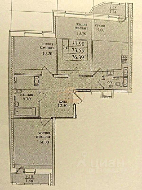 Общая площадь 79.3 кв.м. Жилая 37.9кв.м.