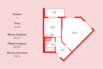 В прямой продаже однокомнатная квартира на 11 этаже с чистой историей, первая продажа в жизни!