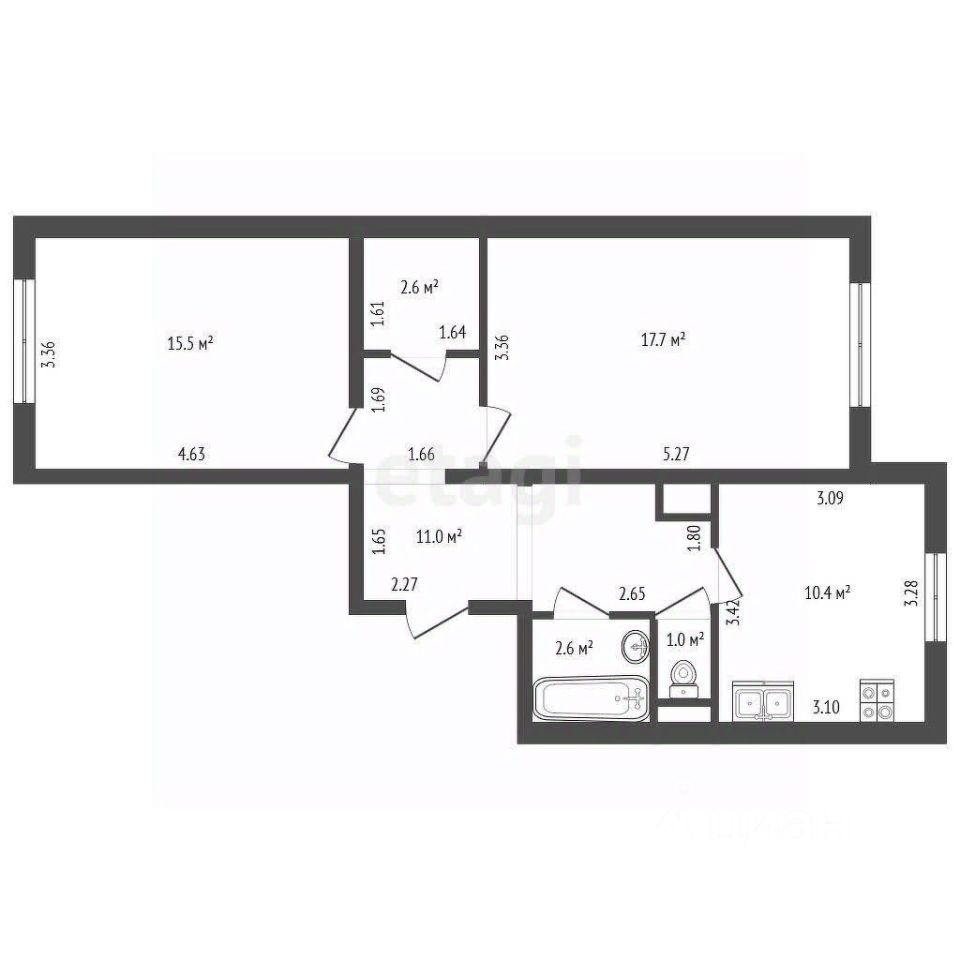 Светлые комнаты 15,5 м2 и 17,7 м2,