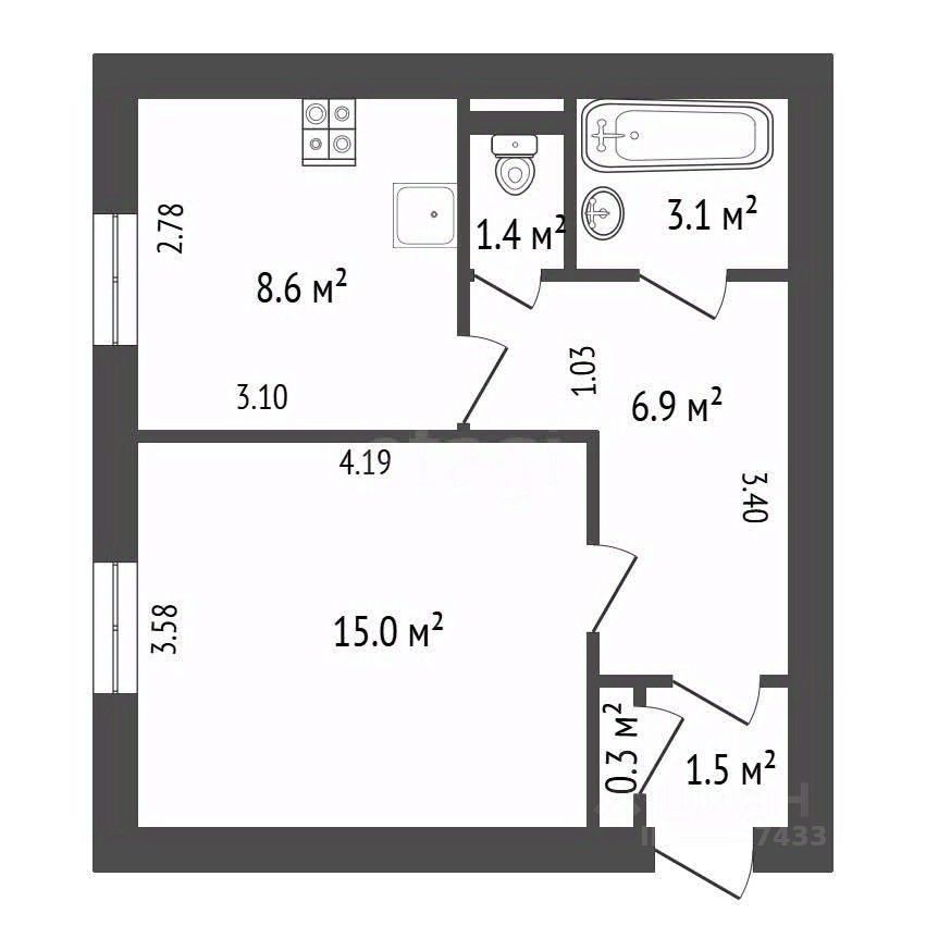 Объект полностью готов к комфортному проживанию. В квартире остаётся современный кухонный гарнитур, оснащенный духовым шкафом, варочной панелью, посудомоечной машиной и вытяжкой. На кухне и в коридоре уложен практичный керамогранит, в санузле — керамическая плитка, а в комнате — паркет. Дополнительные удобства включают систему теплого пола на кухне, полезную антресоль для хранения и кондиционер в жилой зоне.