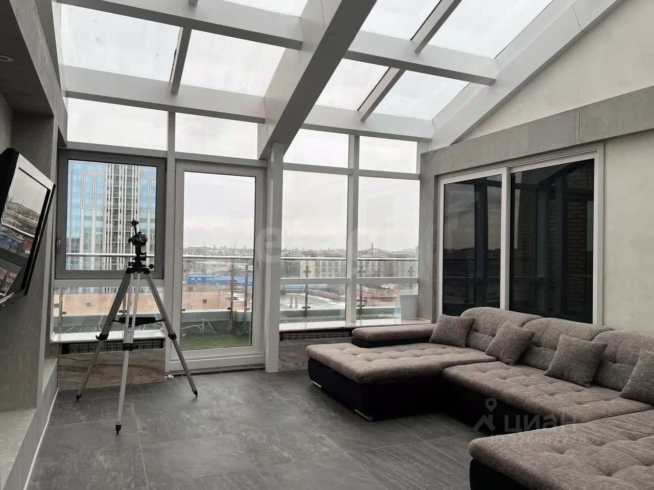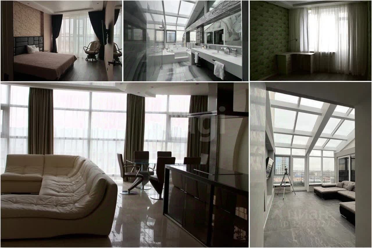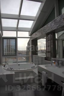 • Особенности дизайна: В квартире высокие потолки, панорамные окна, а также светлая гостиная-терраса с уникальным стеклянным потолком. В ванной комнате при мастер-спальне установлено джакузи.