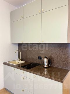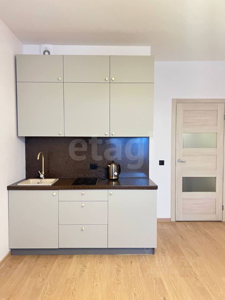 Планировка продумана для комфортного проживания: прихожая оборудована системой хранения, совмещенный санузел оснащен стиральной машиной, а в просторной комнате грамотно организованы зона для готовки и место для отдыха с диваном, трансформирующимся в полноценное спальное место.