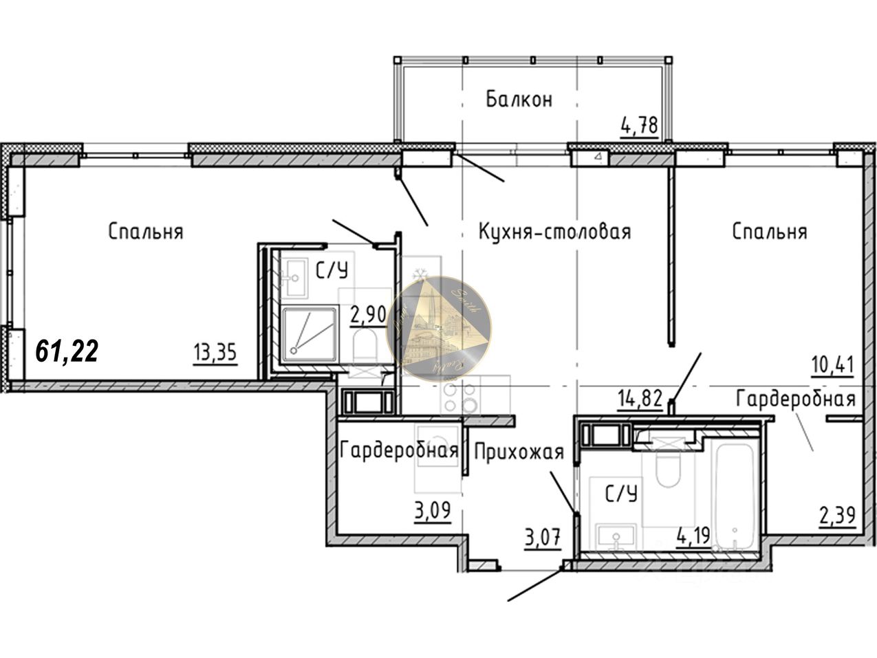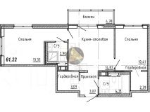 - Общая площадь квартиры 61.22 м2