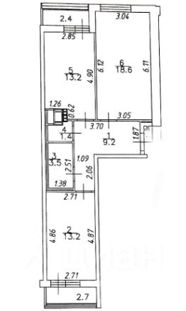 - Общая площадь: 59,1 кв. м