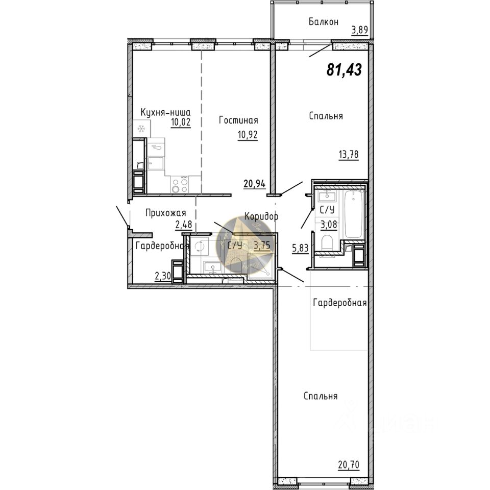 - Общая площадь квартиры 81.43 м2