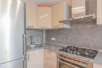 + В кухне установлен кухонный гарнитур с глянцевыми акриловыми фасадами, техника вся в отличном рабочем состоянии: встраиваемая газовая поверхность Siemens, духовой шкаф AEG, большой холодильник Liebherr, Т-образная вытяжка Bocsh, установлены фильтры для воды с обратным осмосом, обеденный стол и табуретки икеа.