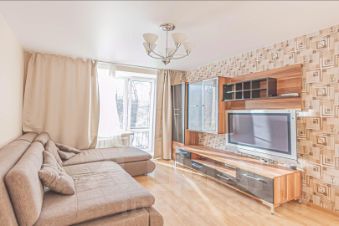 + В гостиной большой раскладной диван, мебель для тв. Bo всех комнатах есть Wi-Fi, подключен интернет и телевидение от Ростелеком. Из гостиной выход на балкон. В спальне большая двухспальная кровать из белой эко кожи, сп.м. 16002000.