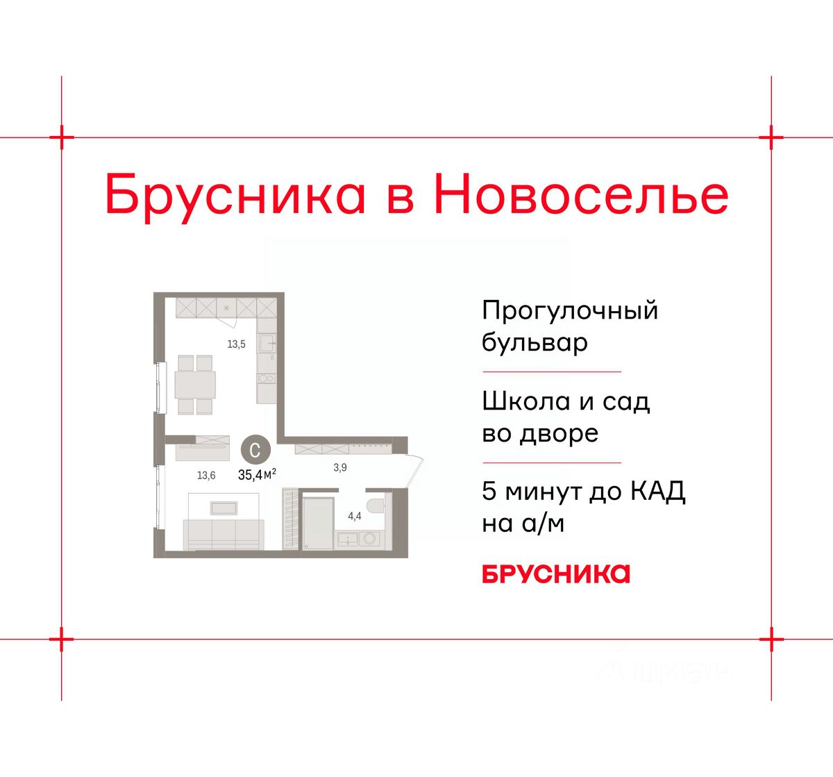 Продается 1-комн. квартира-студия от застройщика с предчистовой отделкой в ЖК "Брусника в Новоселье" на 4 этаже. Общая площадь: 35.39 кв.м., площадь гостиной 27.1 кв.м., из которых 13.5 кв.м. выделено под кухонную зону. Все окна выходят на одну сторону. В квартире один совмещенный санузел. Высота потолков 2.7 м.
