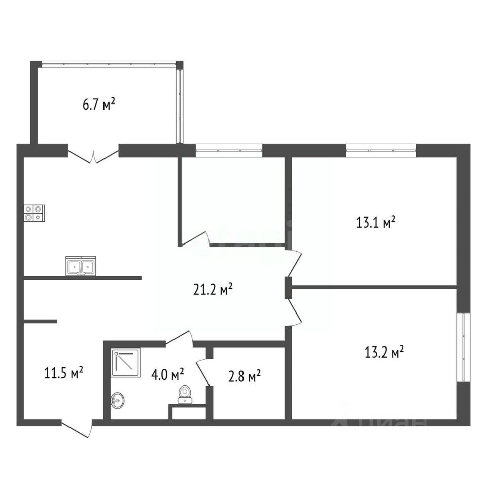 Идеальная планировка: Просторная кухня-гостиная (21.2 м²) для приёмов, две изолированные спальни (13+ м²) для уединения. Широкий балкон с панорамой — ваша вторая гостиная.