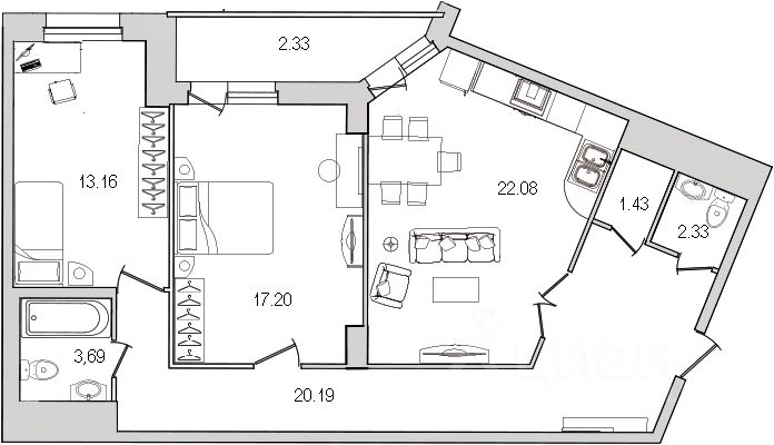 Главное преимущество — потрясающий вид из окон: панорама района и знаменитый Лахта-центр. Большая кухня-гостиная 24 м² станет центром жизни семьи. Квартира наполнена светом благодаря высокому расположению и удачной ориентации.