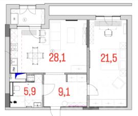 Кухня-гостиная 28,1 м2