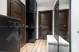 Большой шкаф и тумба для хранения, раздевалка быстрого доступа, большое зеркало.