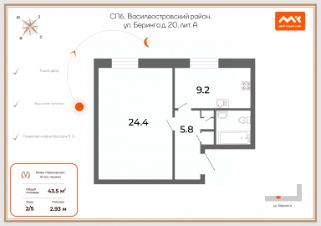 Площадь: 43.5 кв.м.