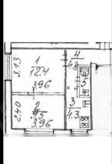 - Общая площадь — 32,6 м²; комнаты смежные 12,4 и 9,5 м², кухня 4,3 м², совмещённый санузел.