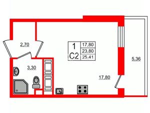 - в комнате - чистовая отделка, кухонный гарнитур с барной стойкой