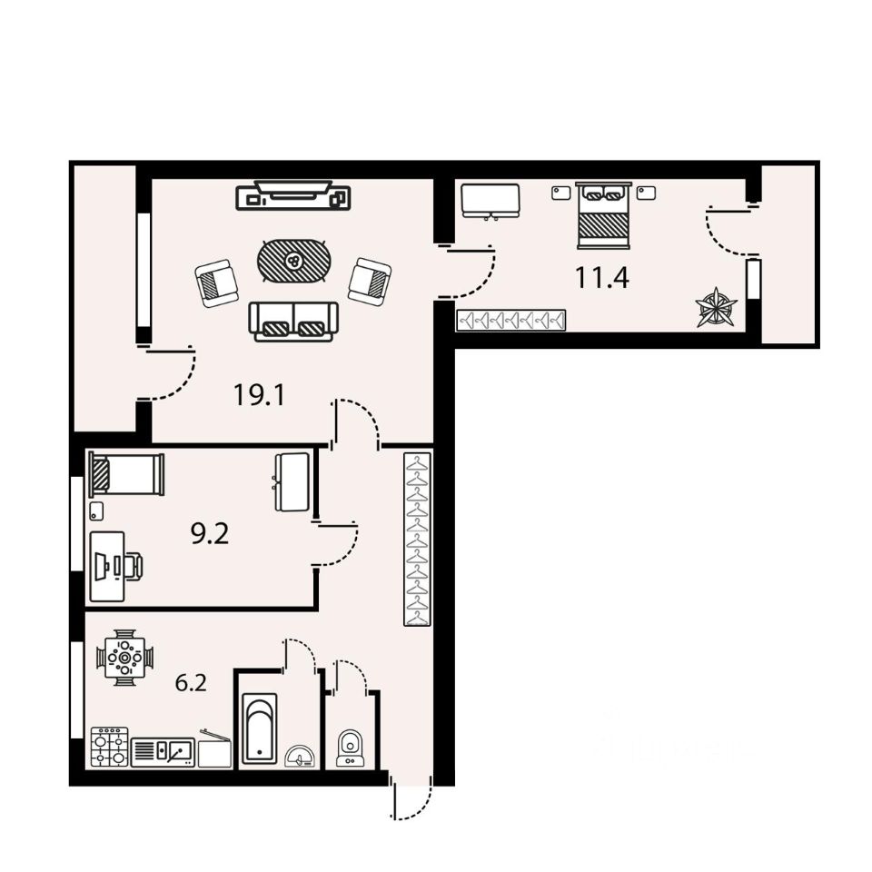 Общая площадь: 58 кв.м.
