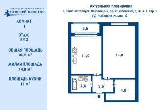 Арт. 129849942 Продаётся просторная 1-комнатная квартира в популярном ЖК Живи! В Рыбацком.
