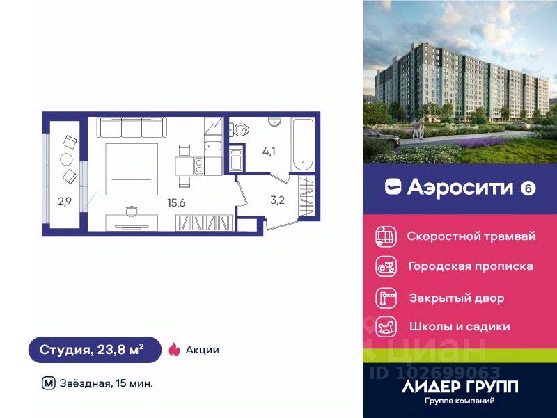 Кирпично-монолитный комплекс с уникальными планировочными решениями, в котором все квартиры предусматривают полную отделку "под ключ". В доме установлено лифтовое оборудование OTIS со спуском в паркинг, IP-домофония, есть охрана, выполнена коллекторная разводка отопления. Закрытый двор с детскими и спортивными площадками. В каждой парадной есть помещение для колясок и велосипедов, магазины, пекарни и ПВЗ на 1-м этаже. Две школы и два детских сада работают прямо через дорогу. Строится две поликлиники и линия скоростного трамвая. 20 минут на автобусе до двух станций метро "Звездная" и "Купчино", городская прописка. Квартиры с полной отделкой, 2 школы и 2 детских сада рядом с домом.100 машино-мест в подземном паркинге - лифты спускаются в паркинг.