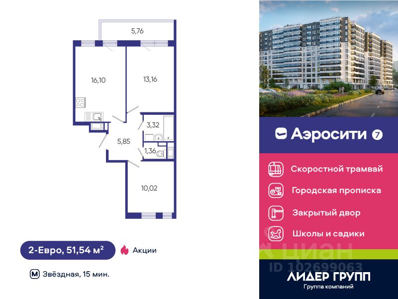 ЖК AEROCITY 7 объединил лучшие идеи и стремления создать гармоничную и безопасную жилую среду. Аэросити 7 — новый проект комфорт-класса от ГК "Лидер Групп" в составе развитого семейного квартала АЭРОСИТИ. Жилой комплекс располагается рядом с новым Старорусским проспектом и строящейся линией скоростного трамвая "Славянка". Территория ЖК примыкает к образовательному кластеру, в который входят два детских сада и две школы, одна из них с 25-метровым бассейном и большим стадионом. Еще один детский сад возводится девелопером в нескольких минутах ходьбы от нового проекта. Дом находится в уже освоенной части квартала, поэтому вся коммерческая инфраструктура работает в торговых галереях на 1-х этажах расположенных по соседству зданий