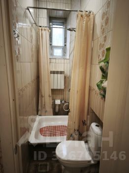 Светлая ванная комната совмещена с санузлом. Отделка - плиткой на стенах и на полу, имеется небольшое окно, подвесные потолки со встроенными светильниками и принудительной вытяжкой.
