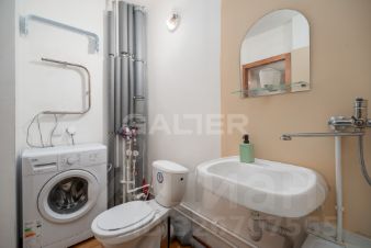 - Просторный санузел с ванной, стиральная машина расположена в удобной нише.