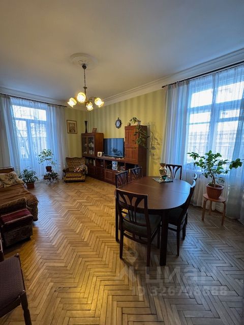 Квартира расположена на комфортном третьем этаже настоящего сталинского кирпичного дома, построенного в 1956 году, с толстыми стенами, что делает квартиру очень теплой и тихой. Квартира трехсторонняя, с двумя балконами на разные стороны, в двух больших комнатах (22.9 кв.м и 23.8кв.м) по два окна , третья комната 12.7 кв.м квадратная, все комнаты изолированные, удобная кухня 10 кв.м., высокие потолки (2.95 м).