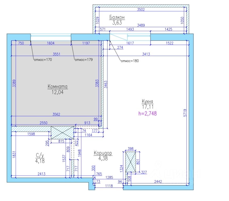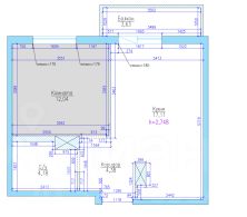 Просторная кухня-гостинная с выходом на лоджию, 17м. Спальня 12м. выделенный коридор - 4,38м, совмещенный санузел -4,18м