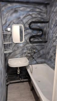В ванной стены подготовлены под плитку (в данный момент окрашены).
