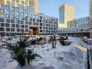 • Безопасность и территория: закрытый двор без машин с ландшафтными садами, фонтаном и амфитеатром. Предусмотрен отапливаемый подземный паркинг с зарядными станциями для электромобилей.