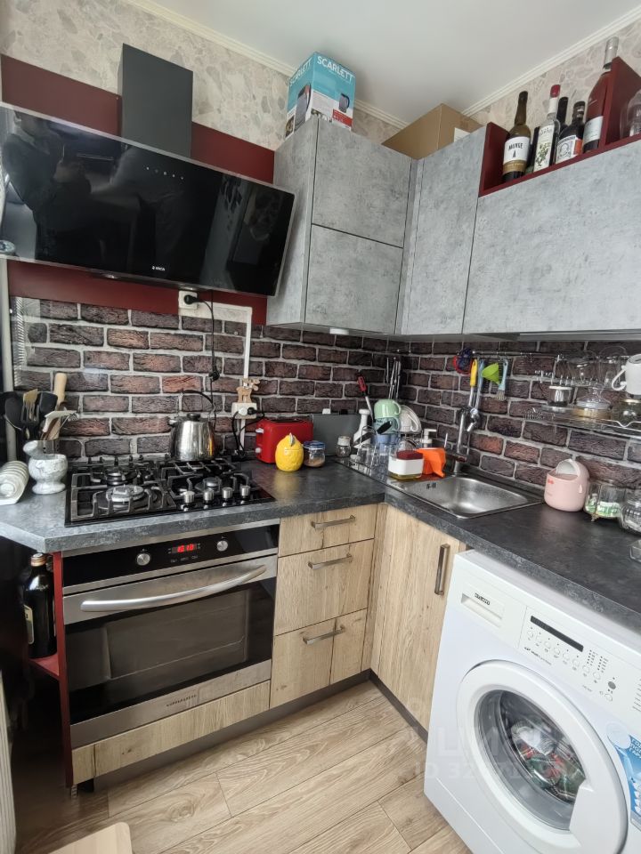 Жилая площадь составляет 15,2 кв. м, а кухня — 6,7 кв. м, высота потолков 2,6 м. Квартира очень теплая и светлая, окна выходят в большой открытый двор. Встроенная кухня изготовлена по индивидуальному проекту, имеется система очистки воды.