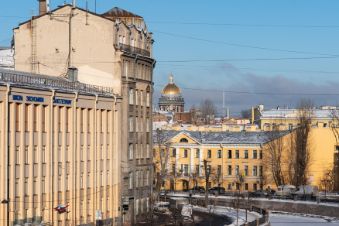 В продаже видовая 3-х комнатная квартира в сталинском доме. Из всех окон квартиры открывается вид на один из самых красивых соборов Петербурга - Никольский Морской собор и набережную канала Грибоедова, из большей части окон виден купол Исаакиевского собора.