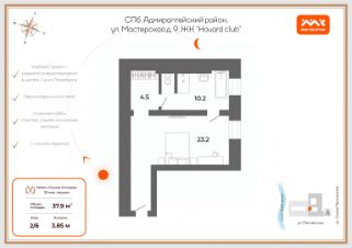 Арт. 103733306 Предлагаем вашему вниманию инвестиционный апартамент общей площадью 37,9 кв.м. в новом клубном доме у Мариинского театра.