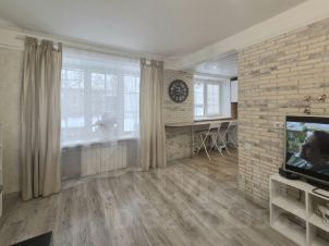 Квартира расположена на 2 этаже. Окна выходят на две стороны (спальни и кухни-гостинной в тихий зелёный двор, второй спальни на улицу). Не шумно. В квартире выполнен современный ремонт. Установлены качественные стеклопакеты. Планировка квартиры очень эргономичная, где продуман каждый квадратный метр площади. Объединено пространство кухни- гостинной, коридора, что позволяет ощутить простор. С/у совмещенный, ванна, в кафеле. Две спальные комнаты, также есть зона кабинета/мастерской. Квартира оснащена мебелью и современной техникой. Все остаётся покупателю. Новая электрическая проводка, радиаторы отопления, трубы. Централизованная горячая вода. Квартира очень тёплая, уютная.