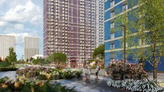 На территории комплекса находятся наземные паркинги, гостевые парковки, детский сад, школа. В пешей доступности расположены магазины, кафе, аптеки и прочие удобства, необходимые для спокойной и комфортной жизни. Во дворах устроены пешеходные зоны, дворы озеленены и благоустроены: имеются тенистые аллеи, уютные зоны для отдыха детей и взрослых, а также стильные плей-хабы.