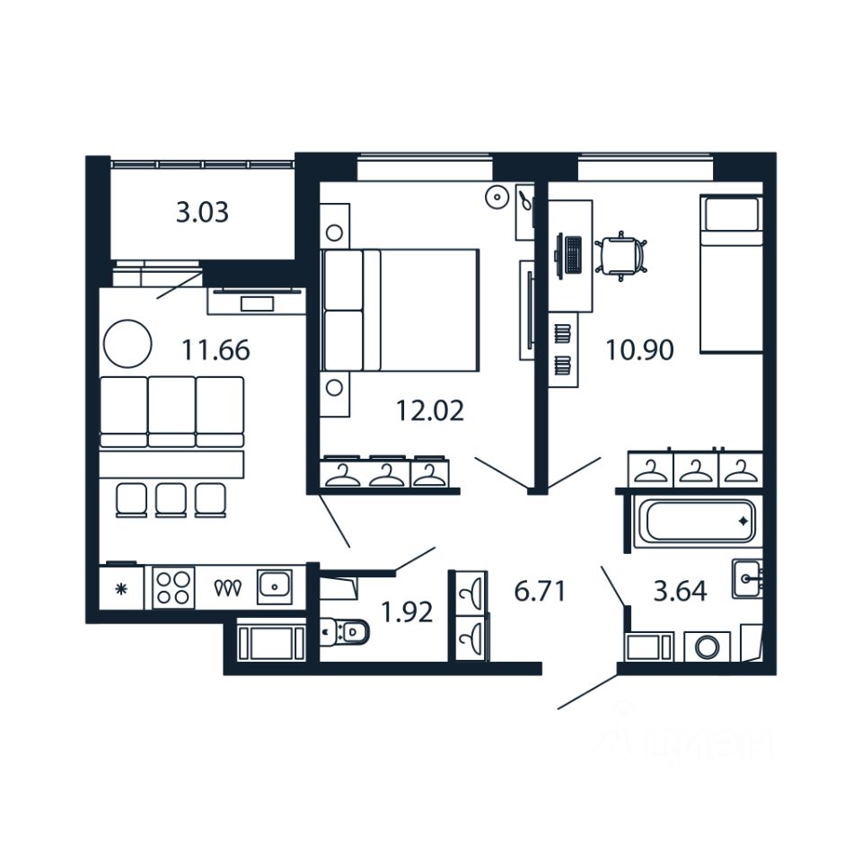 Прямая продажа от застройщика! Готовая Евро-трёшка 45.9 кв.м с кухней 11.66 кв.м с предчистовой отделкой на 11 этаже в сданном ЖК "Полис Лаврики".
